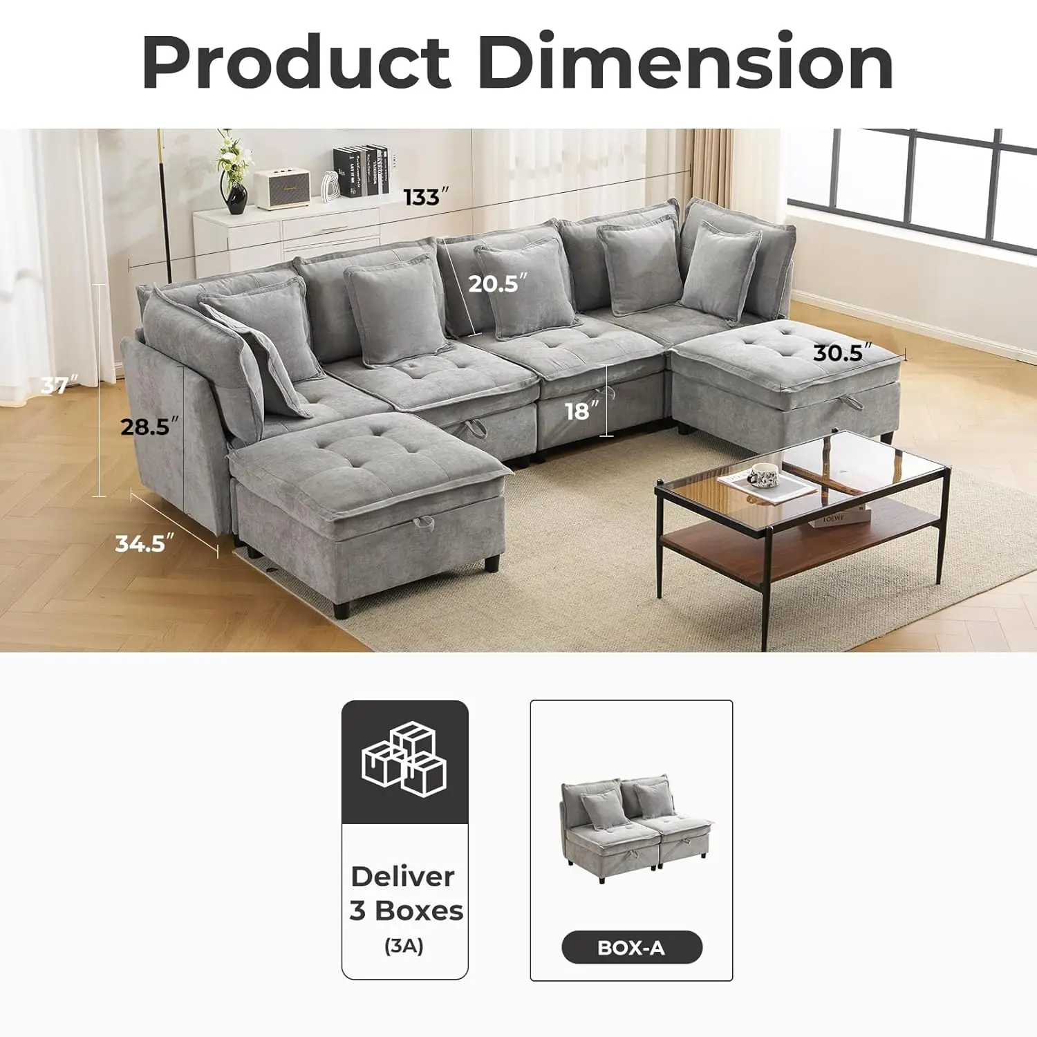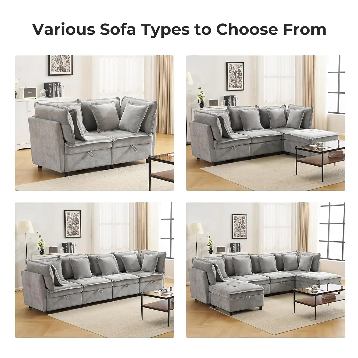 Flexible Modular Design: This oversized sofa couch with wide seats and movable modules that can be arranged into L-shapes sofa, U-shapes sofa, or separate units. Perfect for living rooms, Apartments, or guest spaces—customize layouts to fit any space and enjoy roomy, Flexible comfort.